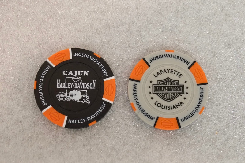 Cajun Harley-Davidson's original collectible poker chip. Comes in many different colors. A random color will be selected unless specified during order placement and pending availability.
