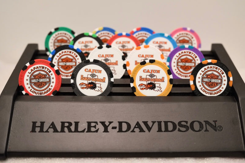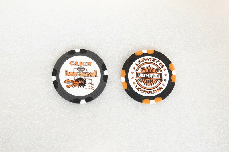 Cajun Harley-Davidson's newly designed collectible poker chip. Comes in many different colors. A random color will be selected unless specified during order placement and pending availability.